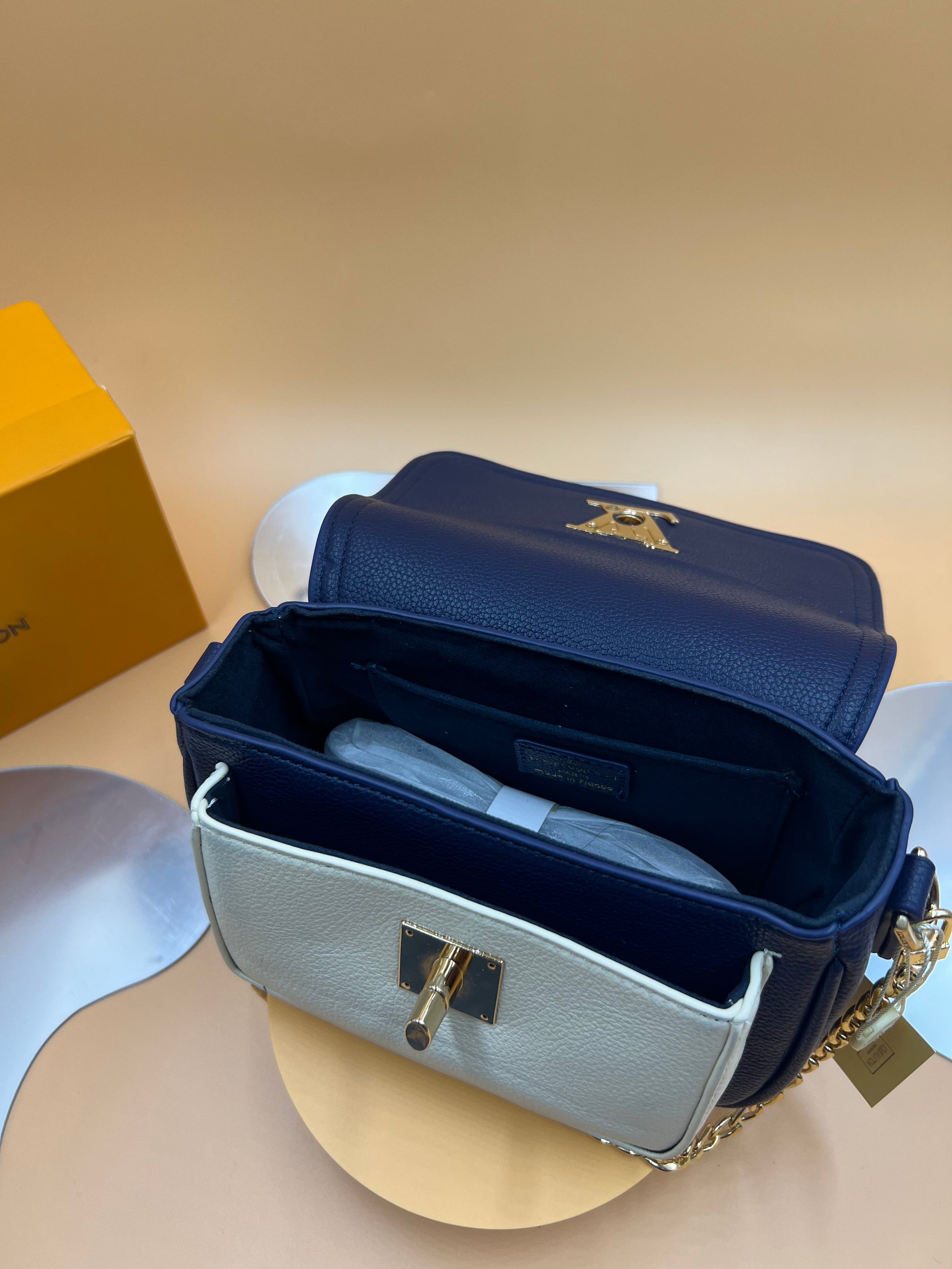 The Lock Me Collection is one of Louis Vuitton’s iconic lines. The Lock Me Away crossbody bag boasts an all-new adjustable and removable ultra-wide strap designed for a casual daytime look. This bold strap comes alongside a traditional gold-tone chain, creating a highly versatile bag that effortlessly transitions from day to night.