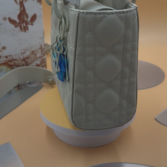 The Lady Joy bag is the epitome of elegance and beauty. Its stunning silhouette can take any ensemble to the next level. The medium Lady Joy bag with black metal charms offers elegant appeal. It also features a shoulder strap that's personalized with unique badges. This versatile bag can be carried by hand, worn over the shoulder, or crossbody, making it the perfect daily companion.